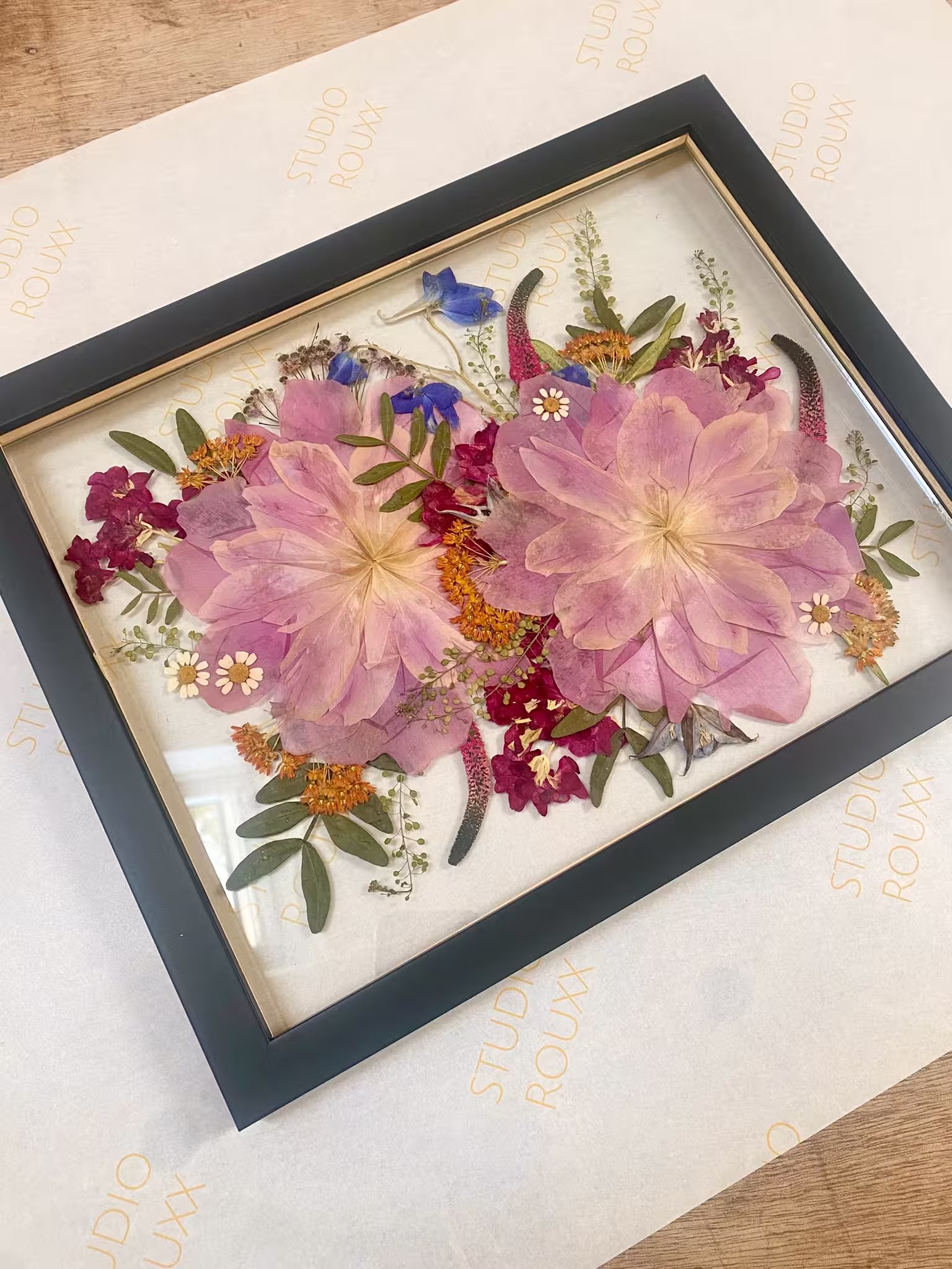 Let us to recreate your bouquet as pressed flower framed art. The perfect gift for a loved one, or yourself.