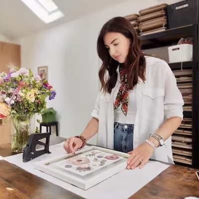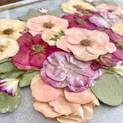 Join us at one of our Workshops, where we teach small groups how to press, design and create their own floral art.