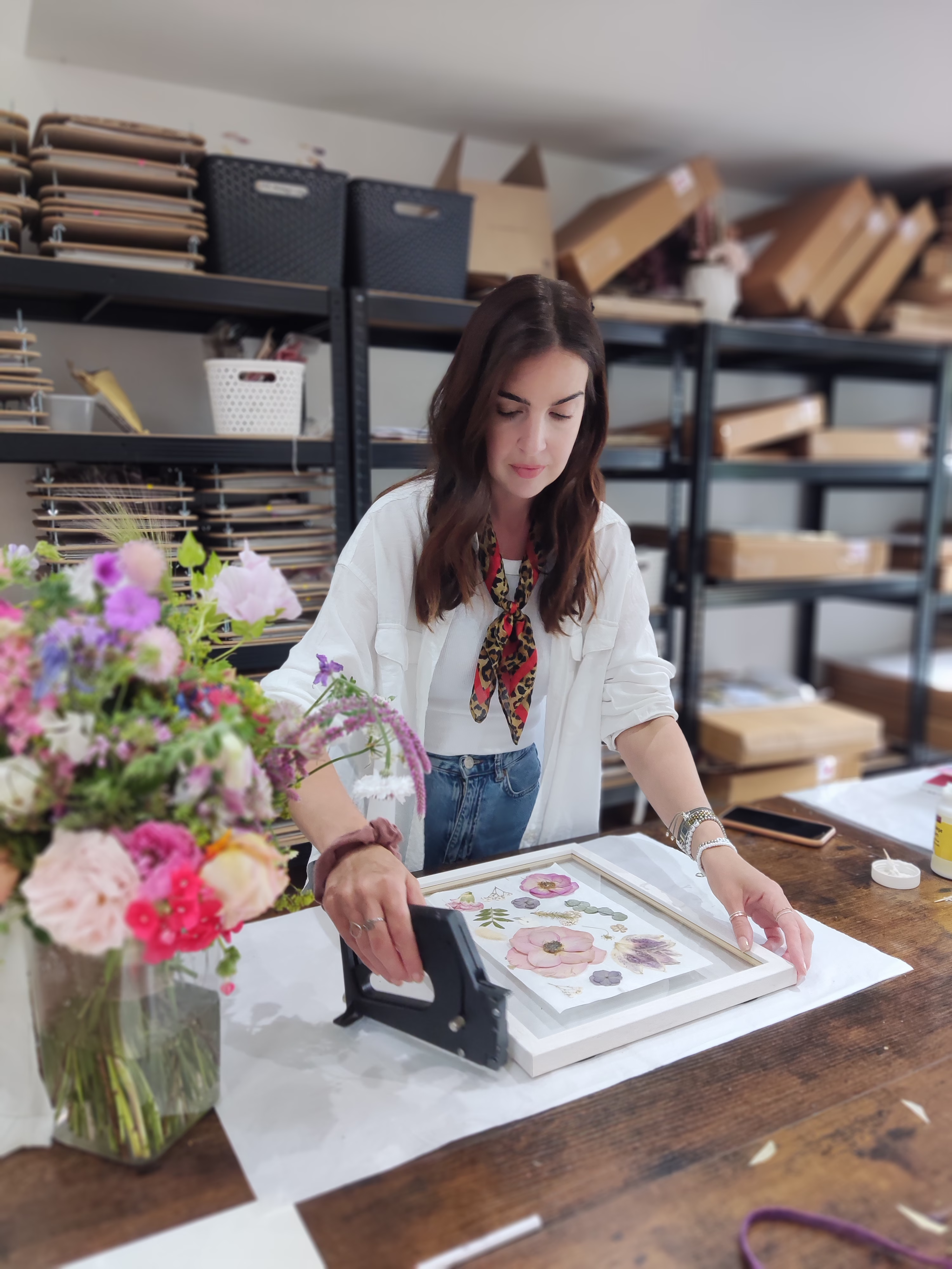 Once your flowers arrive, they are placed straight into your dedicated press to preserve their freshness. They will remain in the press for up to 2 months.